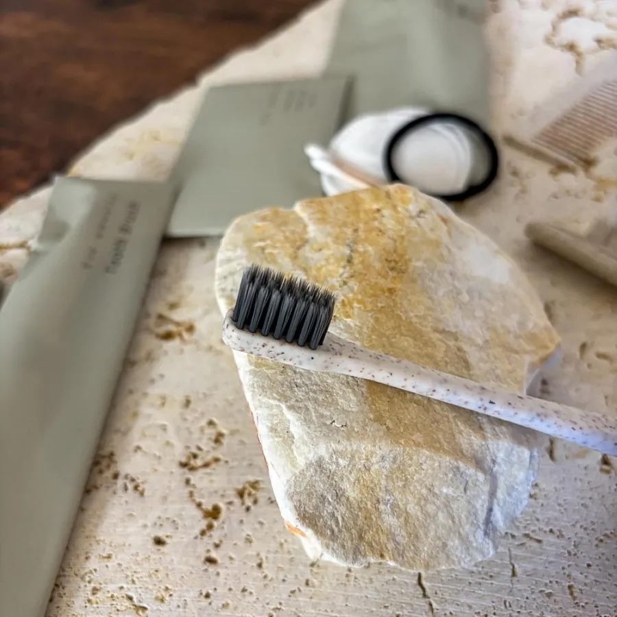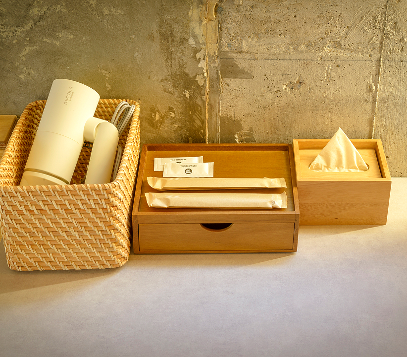 持ち帰っても使えるわら製の歯ブラシのほか、 無添加処方のシャンプーやトリートメント、 ゆったりとした着心地の寝衣(レンタル)など、 肌に直接触れるものだからこそ、 心地よさと環境への優しさを大切にして、 安心して使えるアメニティをご用意しています。